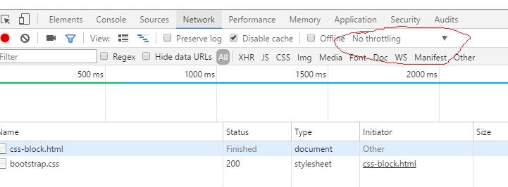 2. 点击我画红圈的地方(No throttling),会看到下图,我们选择GPRS这个选项