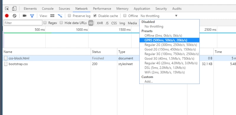点击我画红圈的地方(No throttling),会看到下图,我们选择GPRS这个选项