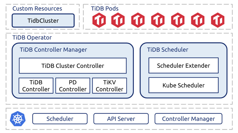 TiDB Operator 是 Kubernetes 上的 TiDB 集群自动运维系统。提供包括部署、升级、扩缩容、备份恢复、配置变更的 TiDB 全生命周期管理。借助 TiDB Operator,TiDB 可以无缝运行在公有云或私有部署的 Kubernetes 集群上。