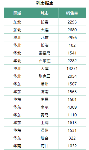 列表报表,作为常见的报表类型,以列表的方式展示字段值,无需分组合并。列表报表的样式如下所示: