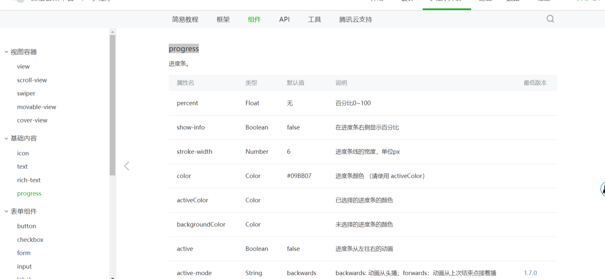 >https://developers.weixin.qq.com/miniprogram/dev/component/progress.html
