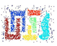 (4)基于密度聚类算法:只要邻近区域的密度(对象或数据点的数目)超过某个阈值,就继续聚类。擅于解决不规则形状的聚类问题,典型的有DBSCAN算法、OPTICS算法、DENCLUE算法。