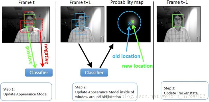 与 generative最大的区别是,分类器采用机器学习,训练中用到了背景信息,这样分类器就能专注区分前景和背景,所以判别类方法普遍都比生成类好。举个例子,在训练时告诉tracker目标特征,还告诉它背景中有其他特征,要格外注意区分,这样的分类器知道更多信息,效果也相对更好。其实,tracking-by-detection我已经搞不清楚和检测算法里的区别了不过效果好比什么都强,如经典行人检测使用的是用HOG+SVM,Struck用到了haar+structured output SVM,跟踪中为了尺度自适应也需要多尺度遍历搜索,区别仅在于跟踪算法对特征和在线机器学习的速度要求更高,检测范围和尺度更小而已。这点其实并不意外,大多数情况检测识别算法复杂度都比较高不可能每帧都做,这时候用复杂度更低的跟踪算法就很合适了,只需要在跟踪失败(drift)或一定间隔以后再次检测去初始化tracker就可以了。其实我就想说在工程实际中FPS才是最重要的指标,慢的算法已经不适合我们做实际工程的人去研究,就让那些大神(非人类)去研究,嘻嘻我们只需拿来用就行。经典判别类方法推荐Struck和TLD,都能实时性能还行,Struck是2012年之前最好的方法,TLD是经典long-term的代表,它也是我们接下来需要认真去讲的,它里面的思想是十分值得借鉴的。