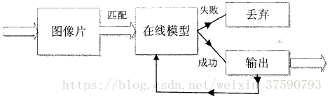 将输入的图像片(通过前两个的分类器后剩余满足条件的矩形框),依次与在线模型进行比对(比对的意思就是计算图像片与在线模型的相似度),如果比对的结果大于给定的阈值,则认为图像片中含有前景目标,否则认为其没有前景目标就丢弃掉。如果含有前景目标,一方面就将此图像片输出存放在有关位置,用来定位最终被跟踪的目标框位置;另一方面将这些通过最近邻分类器的图像片作为正样本,用来更新在线模型中的样本库,在线模型的正样本库的数量是一定的,数量不足就添加,但是超过数量的上限就随机删除一些样本再添加新的正样本。