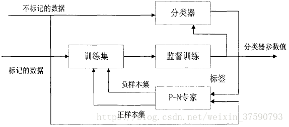 P-N学习由四部分构成:1、分类器—将没有标记的数据进行分类。2、训练集—存放要训练的正负样本。3、监督训练—训练改善分类器性能。4、P-N专家——在学习修正训练集中的正负样本。