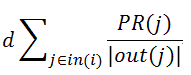 其中PR(i)是网页i被访问到的概率,d代表用户继续访问网页的概率,N为所有网页的数量,in(i)代表所有指向网页i的网页集合,out(j)代表网页j指向的其他网页集合。