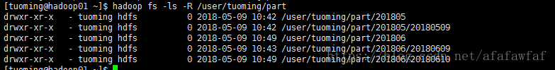 外部表也可以建成分区表,如hdfs目录/user/tuoming/part下有