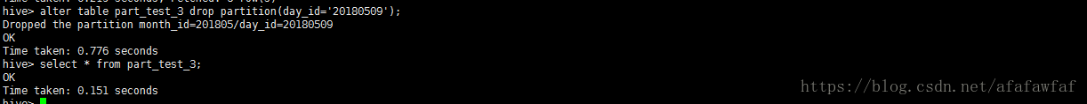 注意:外部分区表使用alter table…drop partition语句删除分区,只会删除元数据,相应的目录和文件并不会删除。内部表使用该语句删除分区,既会删除元数据,也会删除相应的目录和数据文件。
