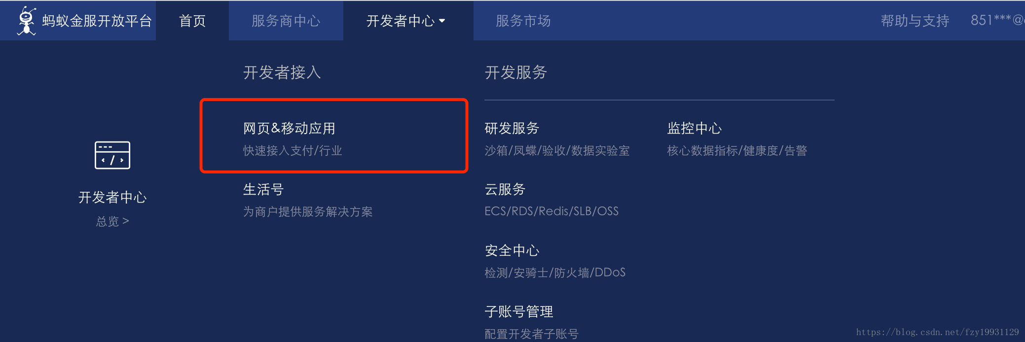 登陆支付宝开放平台,进入开发者中心,找到对应的应用