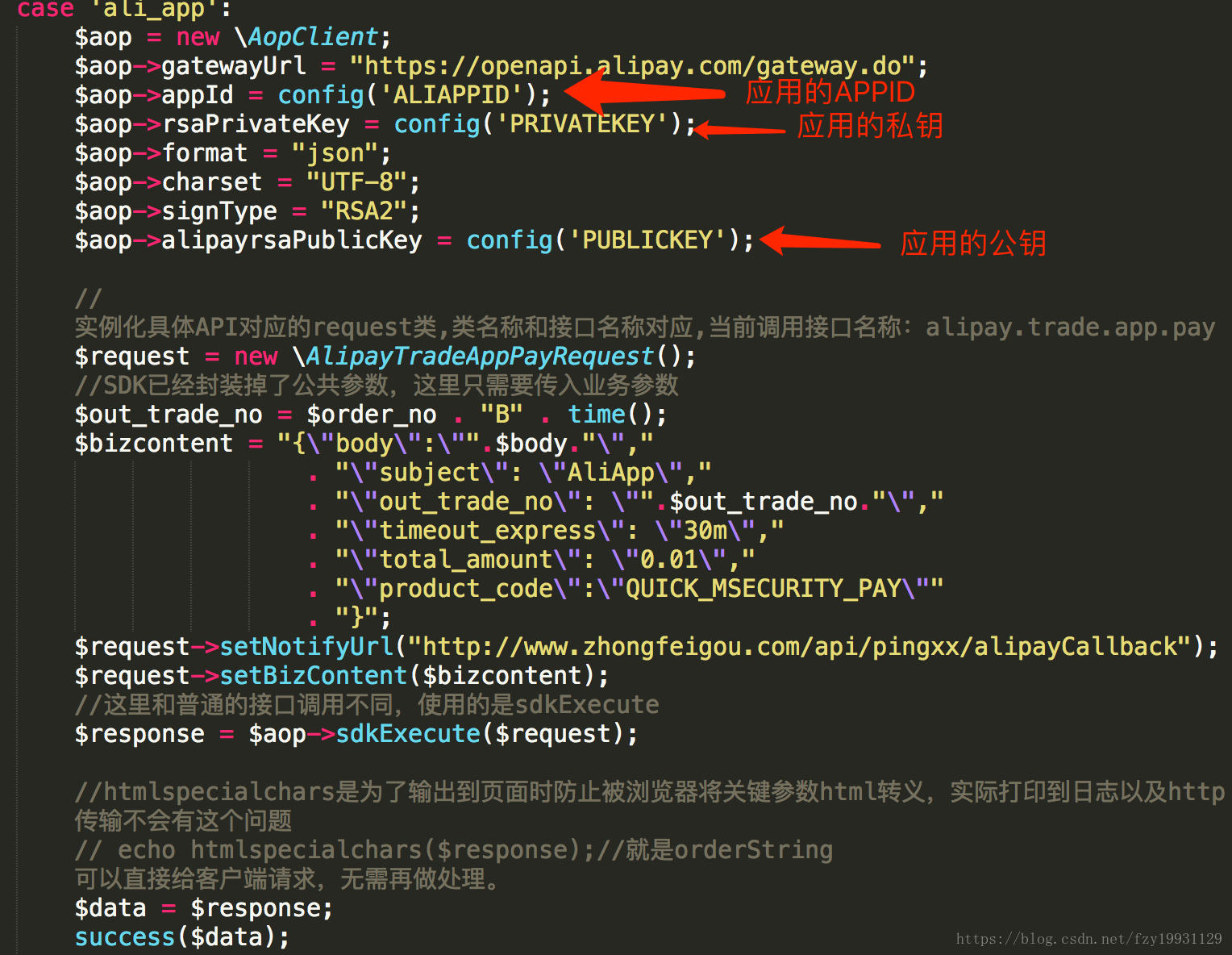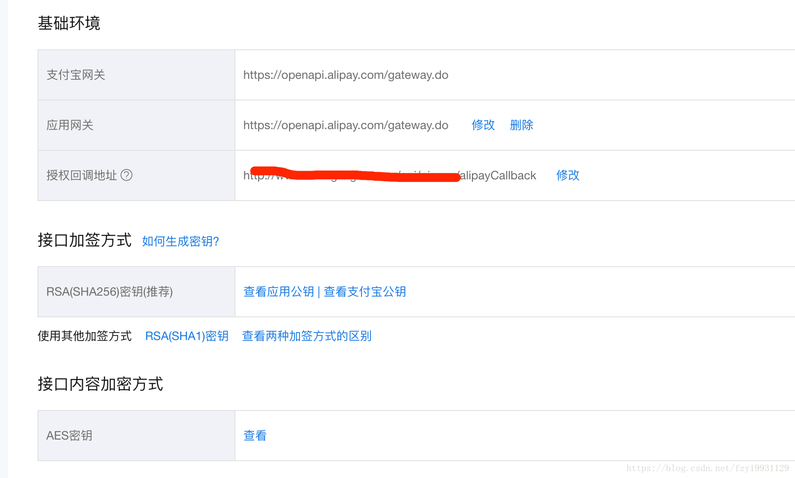 配置应用信息中的开发配置,对应的开发私钥公钥及支付宝公钥参考官方文档,RSA秘钥生成地址链接https://docs.open.alipay.com/291/105971/