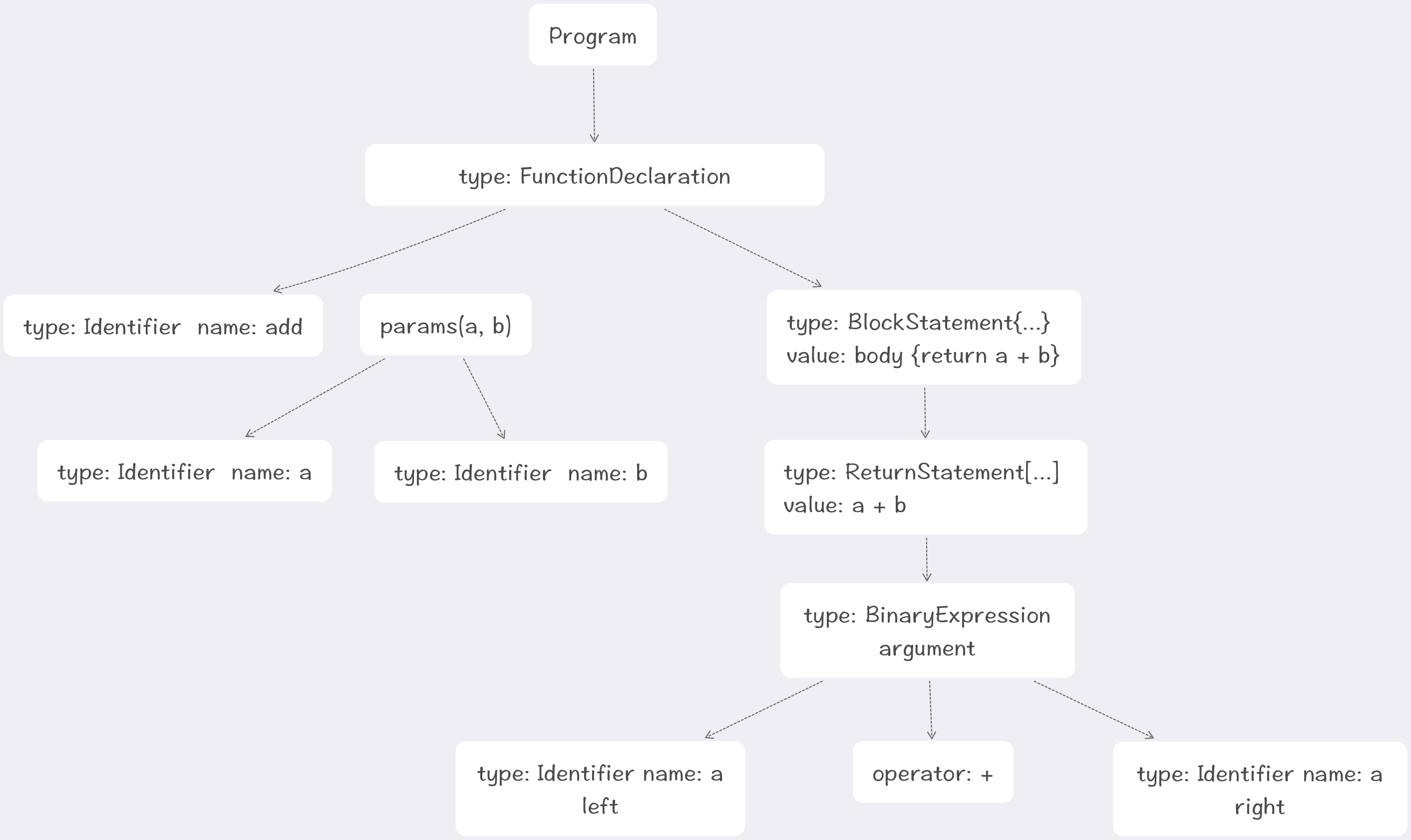 function、add、(、a、,、b、)、{、return、a、+、b、}13 个代码块 - 然后进入语法分析阶段,具体如图所示