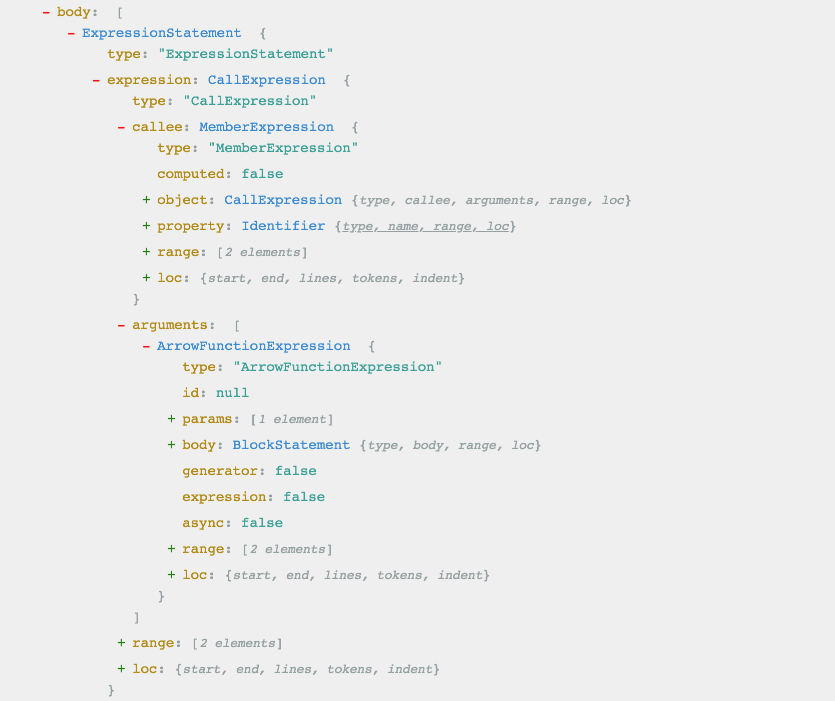 我们回到我们例子,我们直接对它进行 parse ,看看 parse 后的 AST 结构是如何的