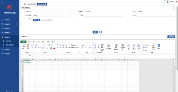 模板管理模块,统一管理模板的设计和制定,将SpreadJS的在线表格编辑器嵌入系统中,完成在系统中录入模板的需求;可以支持从Excel中或者设计器中导入模板。