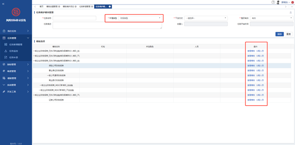 任务下发过程中完成将模板内容下发到分子公司的操作,选择任务所属类型之后,可以对该类型下的模板进行角色分配,指定分公司的填报角色。