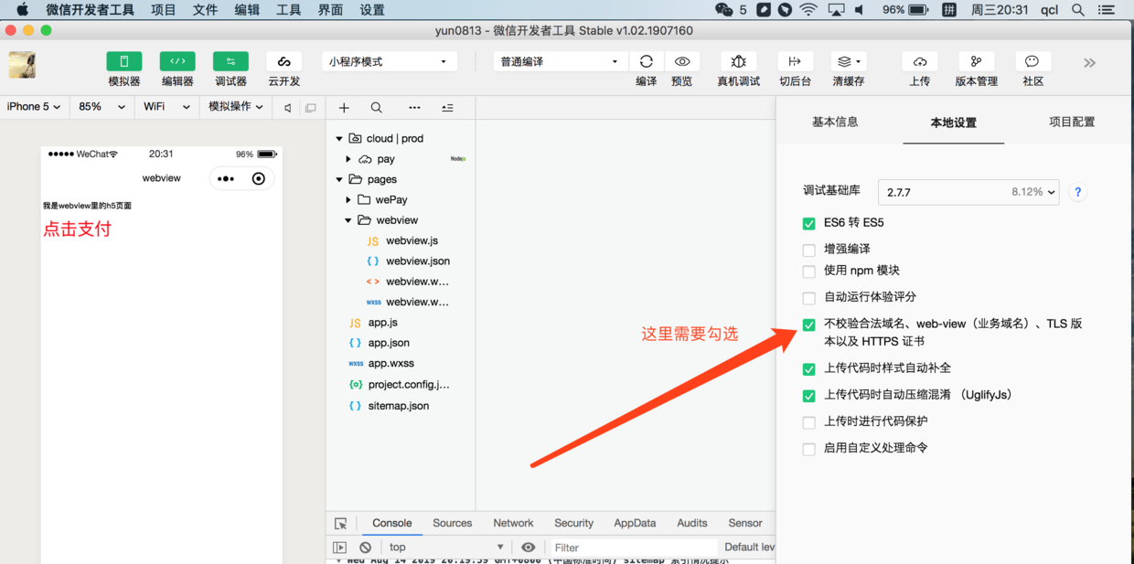 到这里我们就完整的实现了小程序webview展示h5页面,并且做到了h5和小程序的交互,实现了小程序webview的支付功能。