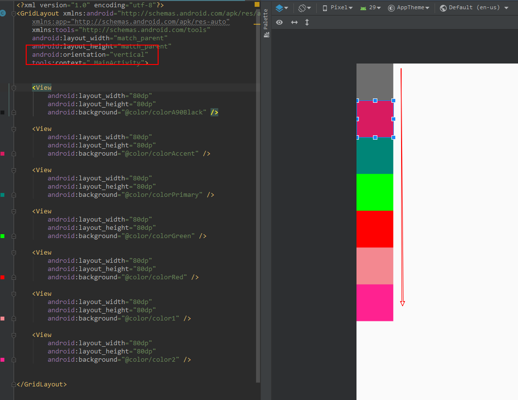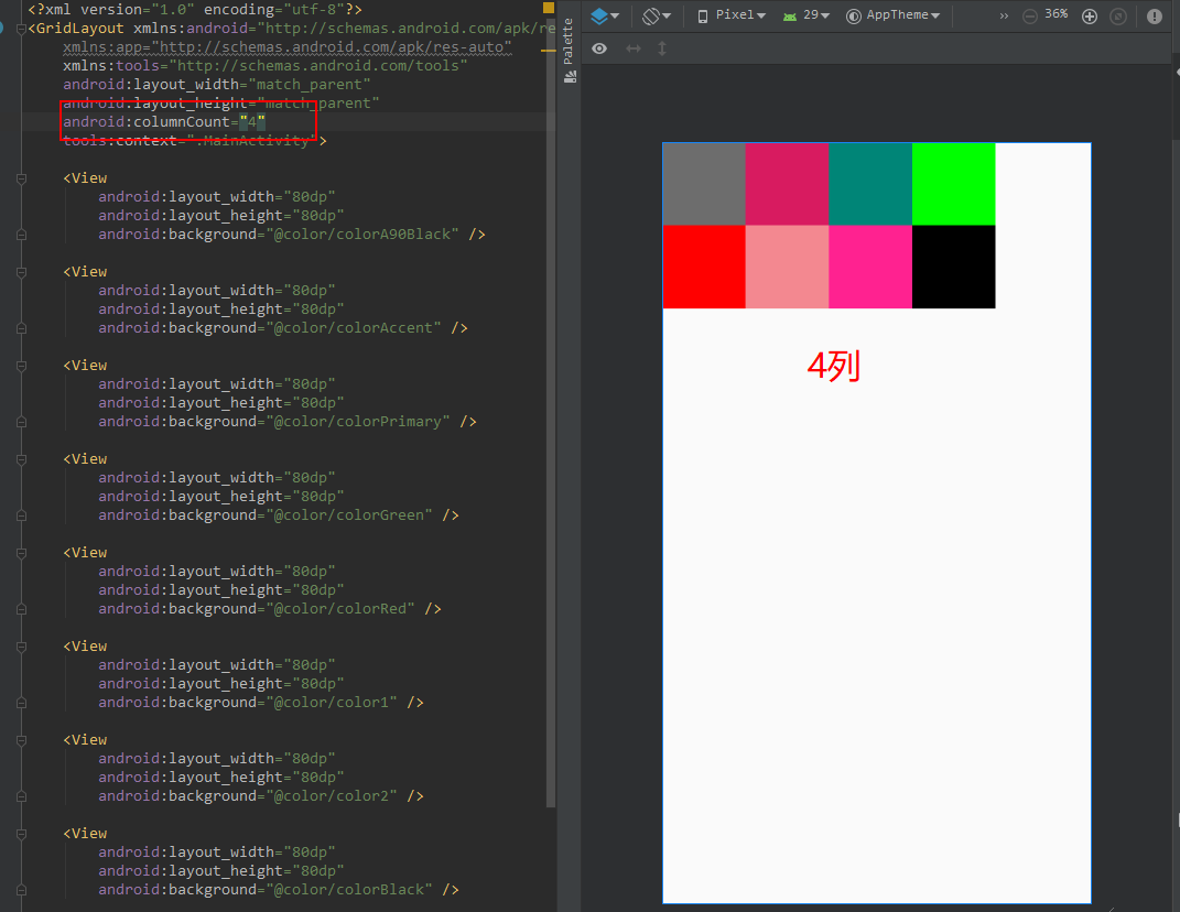 android:columnCount为可以设置列数,要多少列设置多少列,如android:columnCount="2"为设置网格布局有2列。