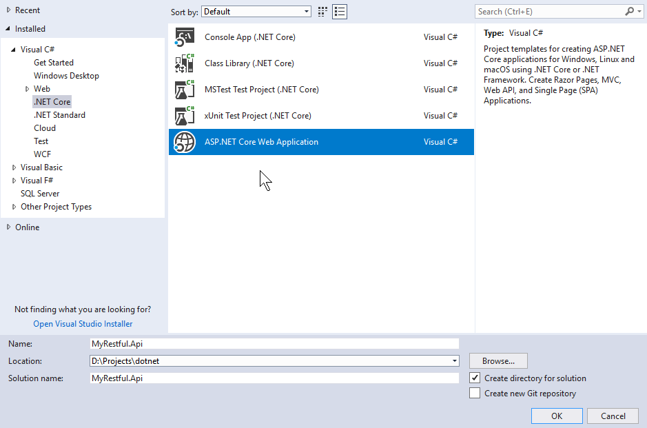 创建ASP.NET Core项目