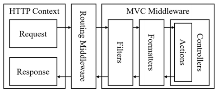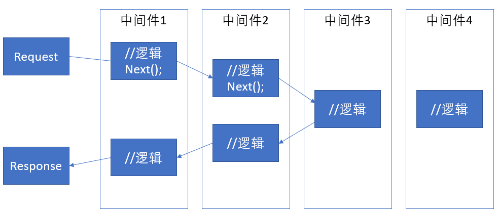 在应用程序请求管道内装配的组件就是中间件, 它们负责处理通过管道的请求和响应.