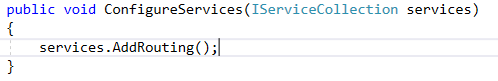 而在ConfigureServices方法里, 所有程序级的依赖项都可以在这里注册到默认的IoC容器里, 把它们添加到IServiceCollection即可.
