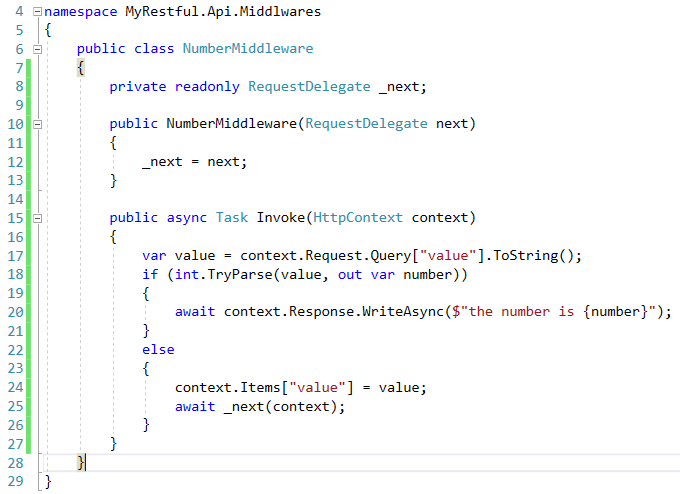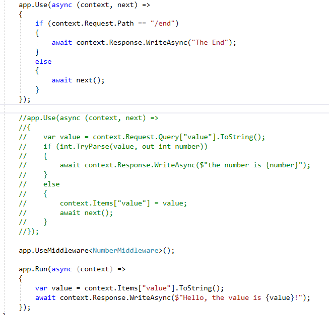 然后在Startup的Configure方法里调用app.UseMiddleware<NumberMiddleware>()即可:
