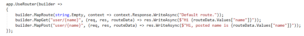 UseRouter这个扩展方法可以接受IRouter或者Action<IRouterBuilder>作为参数.