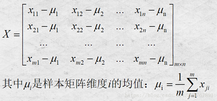 1、输入样本矩阵,大小:m*n。每一行为一个n维样本,共m个,如下图: