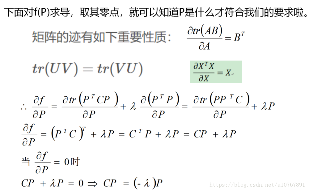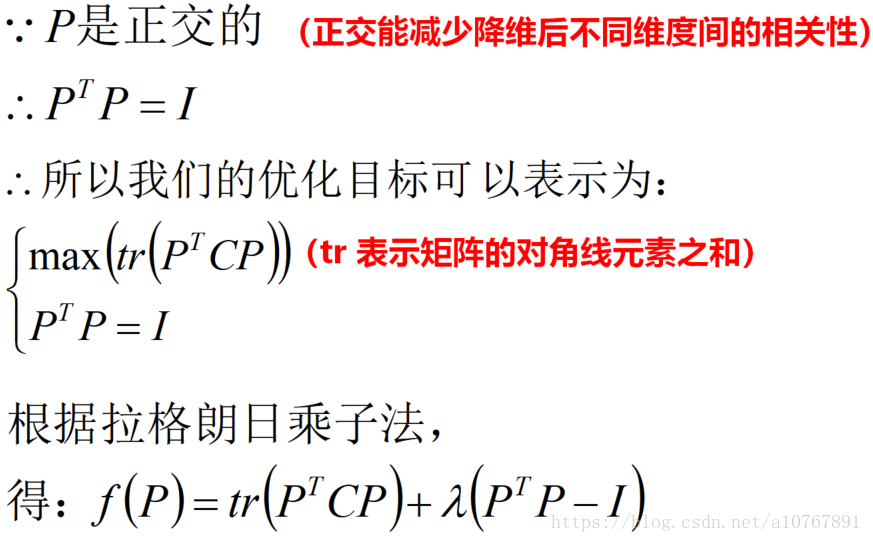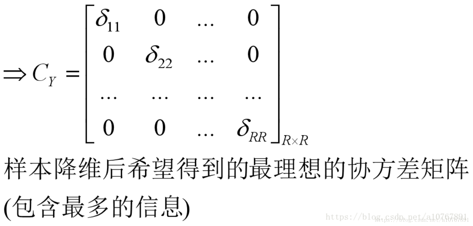 根据线性代数,我们可以知道同一元素的协方差就表示该元素的方差,不同元素之间的协方差就表示它们的相关性。因此这两个优化目标可以用协方差矩阵来表示,如下图: