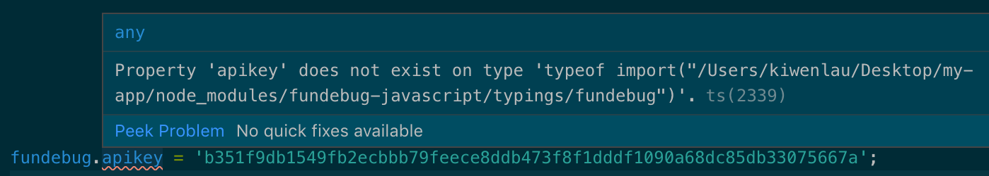 TypeScript用户在使用全局变量fundebug来配置各种属性时,则会看到报错: