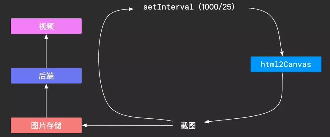 为了使得生成的视频较为流畅,我们一秒中需要生成大约25帧,也就是需要25张截图,思路流程图如下: