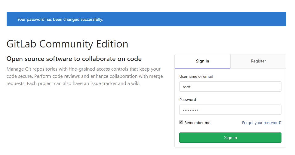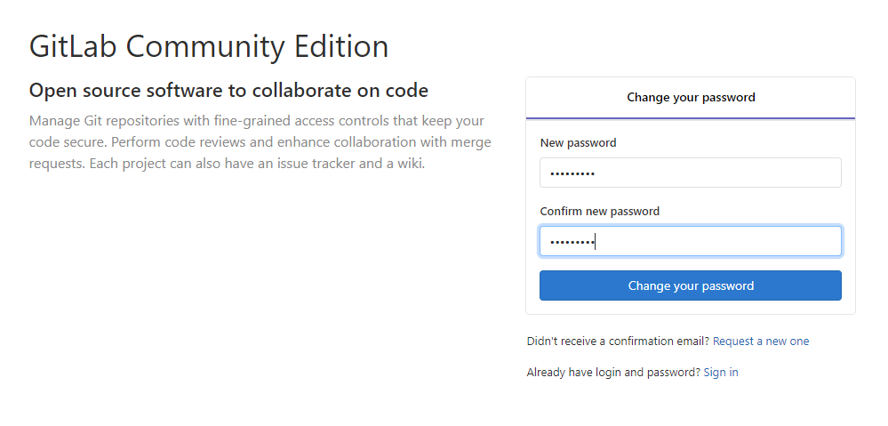 Gitlab启动完成后第一次访问,会让你重置root帐号的密码