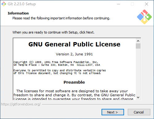 - 下载地址:https://github.com/git-for-windows/git/releases/download/v2.23.0.windows.1/Git-2.23.0-64-bit.exe