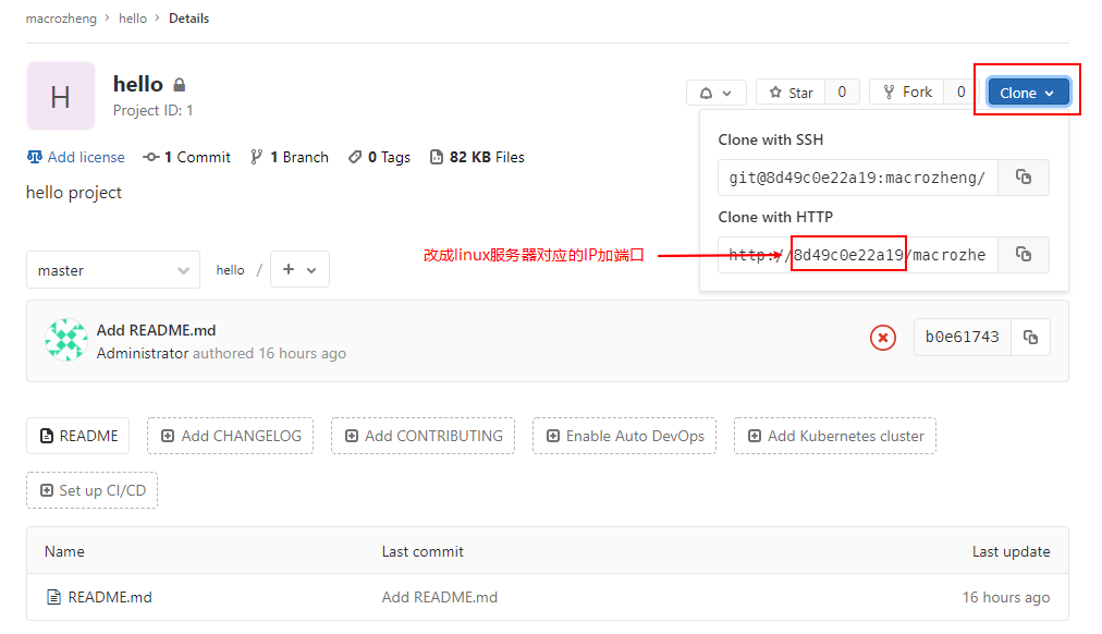 git clone http://192.168.3.101:1080/macrozheng/hello.git
