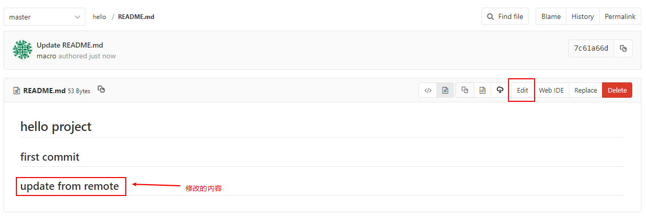 - 在Gitlab上修改readme中的文件内容: