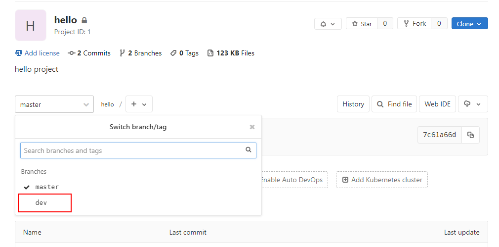 # 切换到dev分支