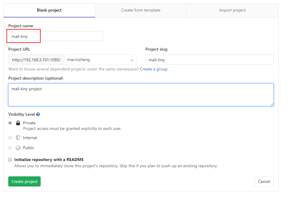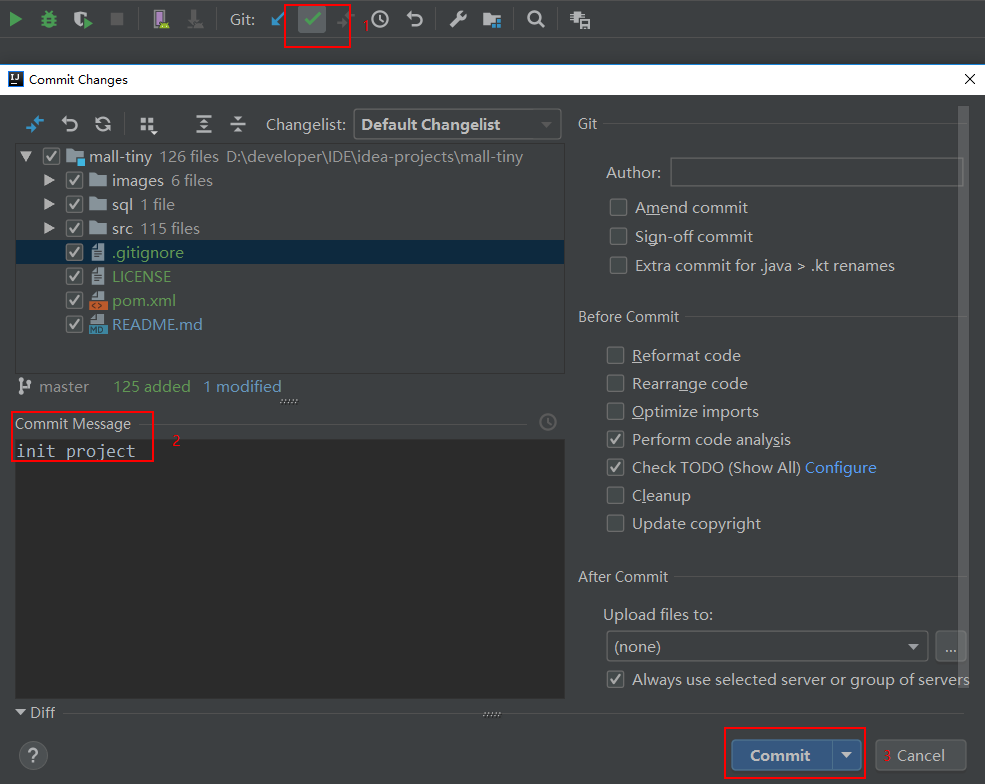 我们这里使用mall-tiny项目的源代码来演示,尽可能还原一个正式的操作流程。