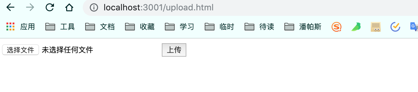 然后我们用HTTP服务打开这个页面:http://localhost:3001/upload.html,因为我们整个 public 目录已经是一个静态HTTP服务目录了,里面的所有文件都可以通过HTTP访问。