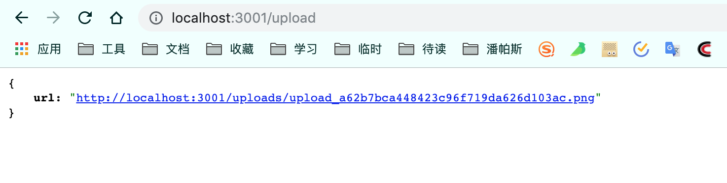 然后我们改造一下 upload 路由的实现,让它生成图片链接返回给客户端
