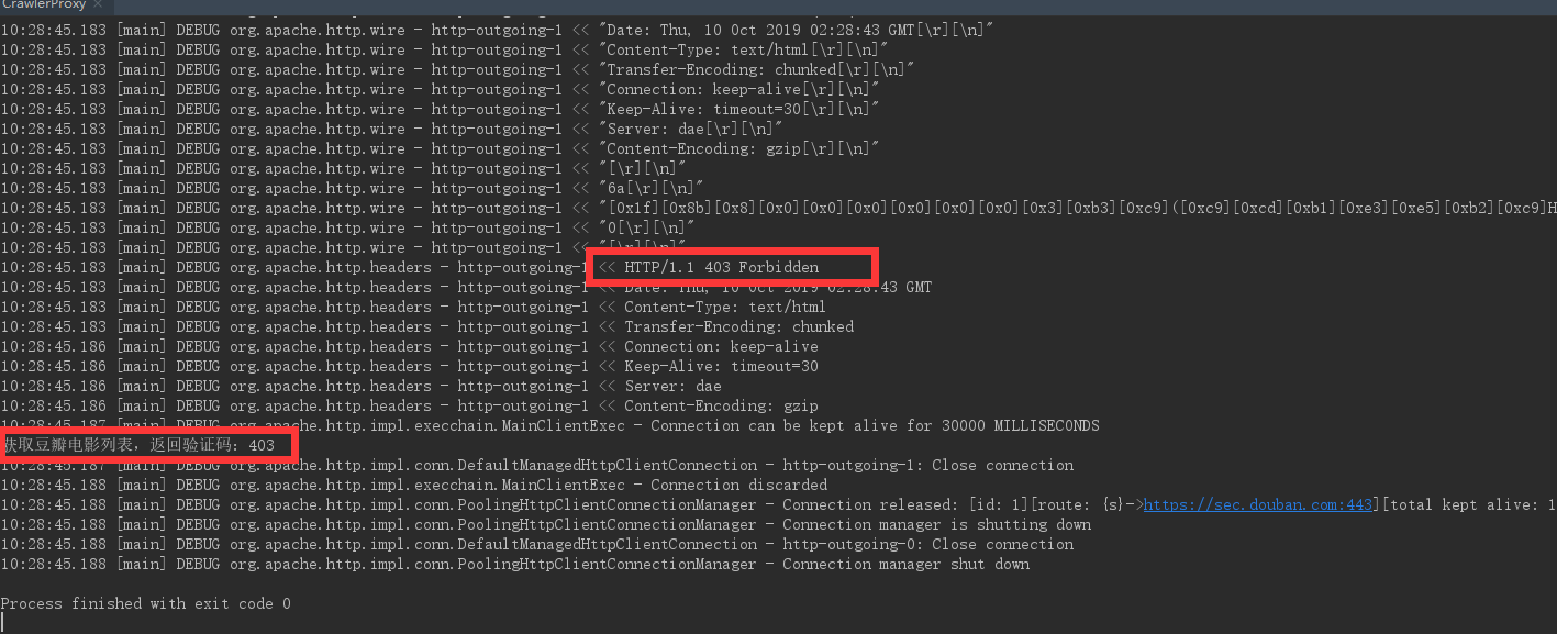 System.out.println("采集豆瓣电影,返回状态码:" + Response.statusCode() + " ,请求ip:" + proxys[0]);
