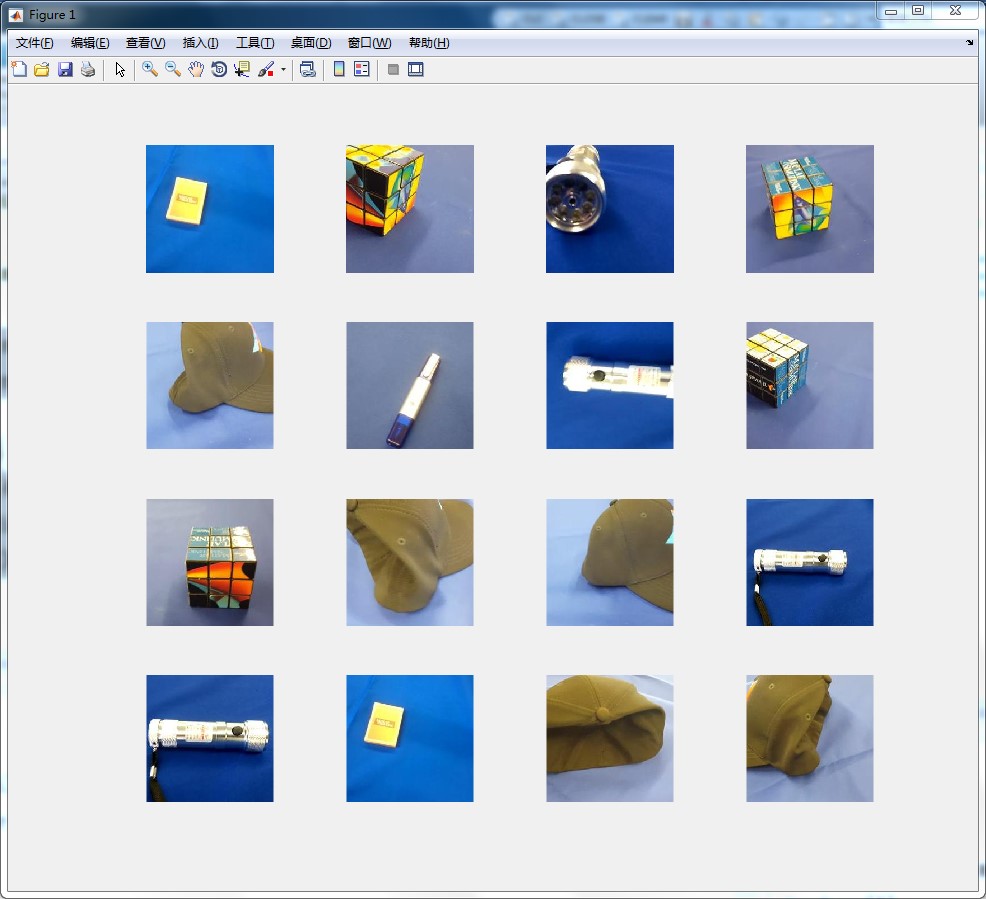 可以看到待使用的数据,被一个数据结构进行了组织,并且使用文件夹的名称作为了类标签。我们随机选择16个图像用 的方式进行显示。