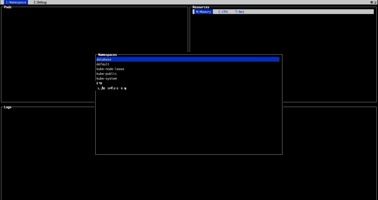 【⬆️⬇️】 选择 Namespace,【回车键】确认选择,【n键】 再次唤起 Namespace 选项