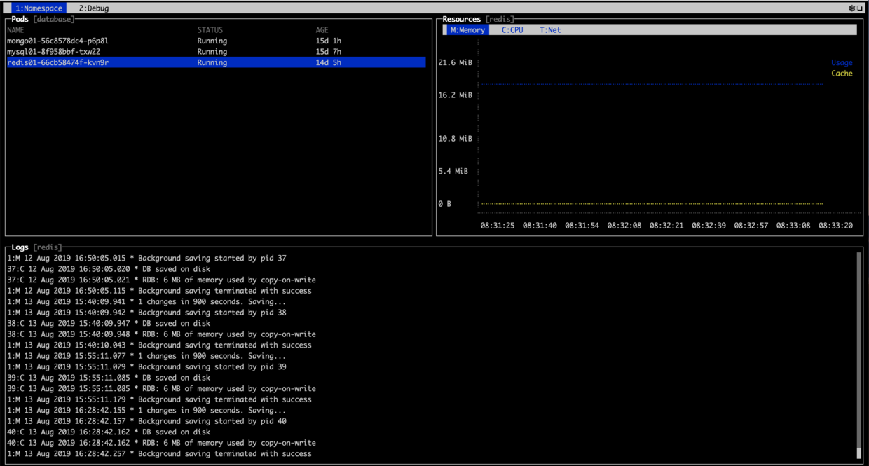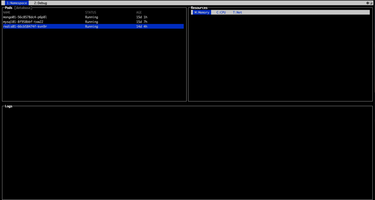 【⬅️➡️】切换 Namespace 和 Debug,或者【2键】进入 Debug 选型卡,此处记录了你在 Kubebox 上的一些操作,实际用处不大
