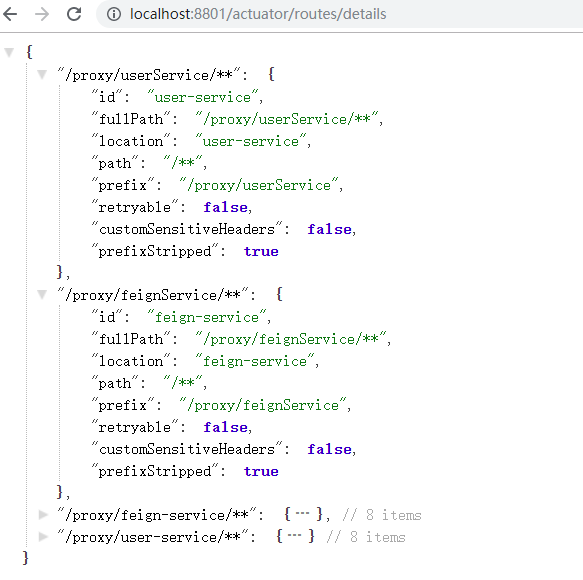 - 通过访问http://localhost:8801/actuator/routes/details查看详细路由信息: