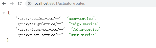 - 通过访问http://localhost:8801/actuator/routes查看简单路由信息: