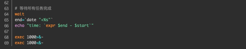 通常,用{}将不占处理器却很耗时的任务放包装一个块,通过&放置在后台运行,以达到节约时间的效果。上面并行代码,我们把10次任务全部放在后台执行,每个人物耗时2秒,由于并行执行,总耗时也就是Max(任务耗时)=2秒。