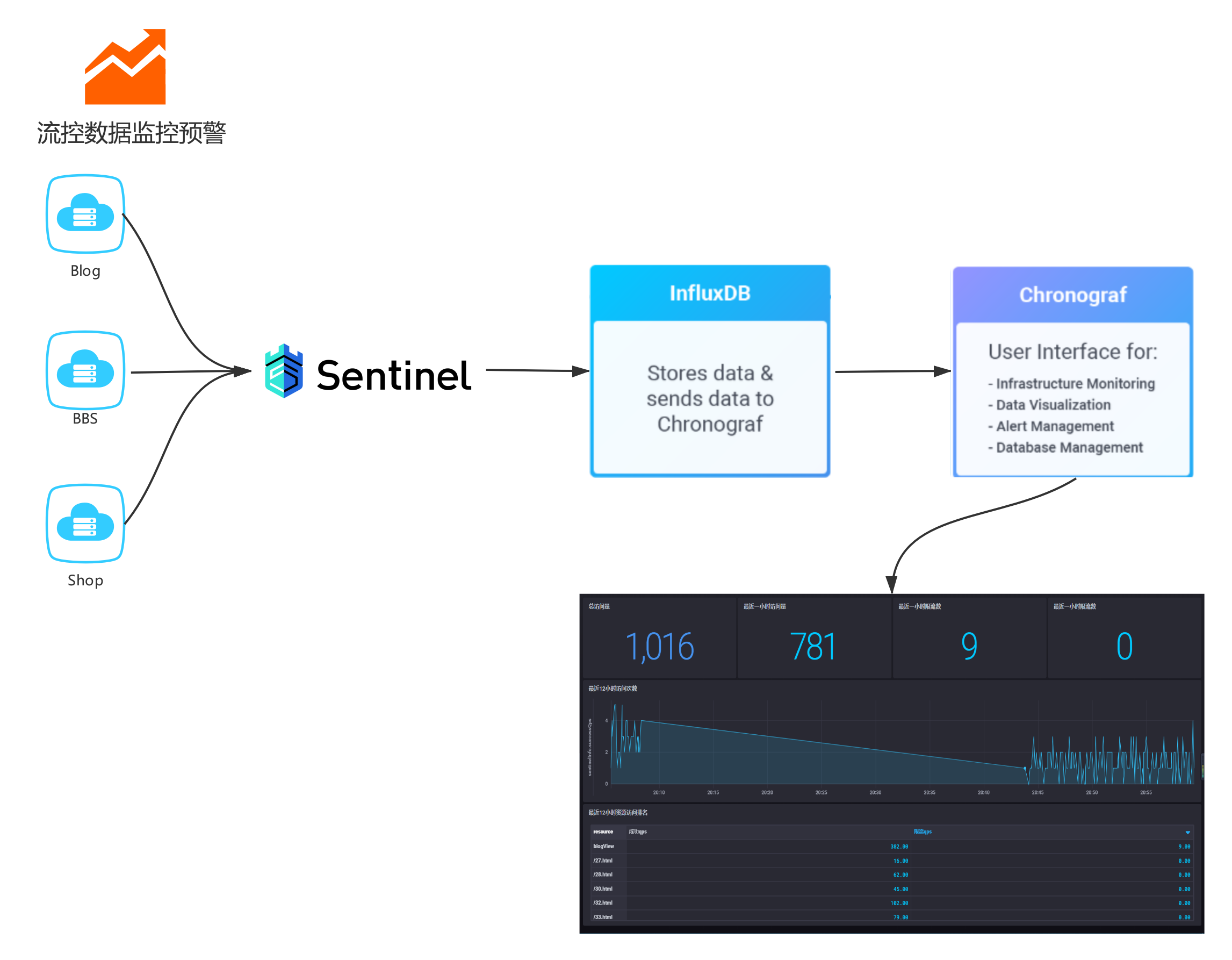 在上一篇推文中,我们使用时序数据库 InfluxDb 做了流控数据存储,但是数据存储不是目的,分析监控预警才是最终目标,那么问题来了,如何更好的实现呢?用过阿里巴巴 Sentinel 控制台的小伙伴,是不是觉得它的控制台丑爆了,而且只有短短的五厘米,显然不能满足大部分人或者场景的使用。