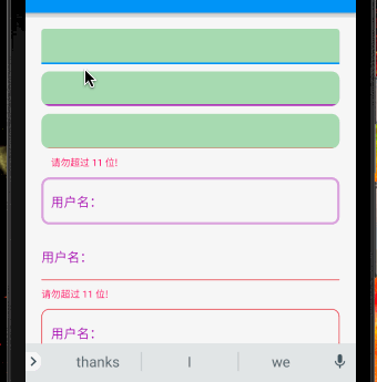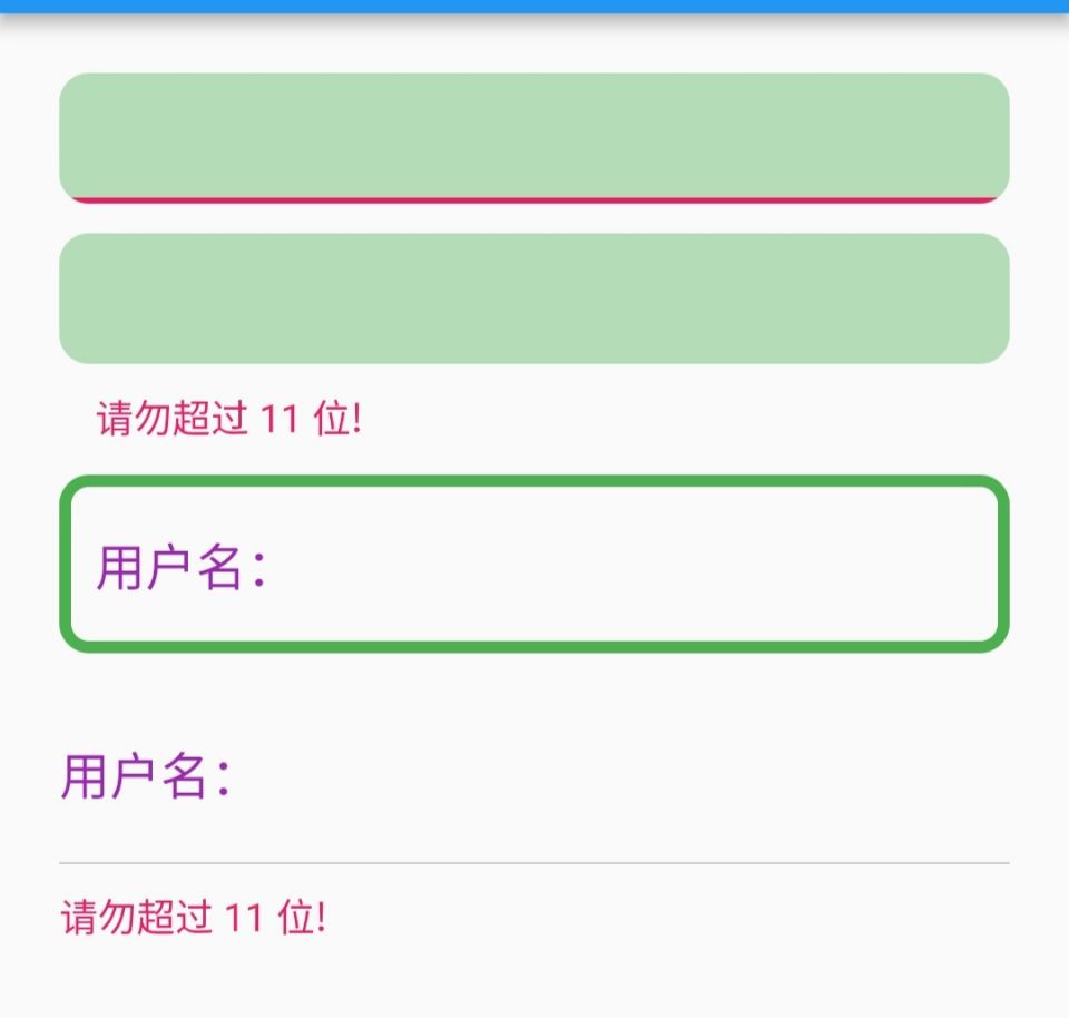 - focusedBorder 为获取焦点时边框,errorText 存在时 focusedBorder 不生效;