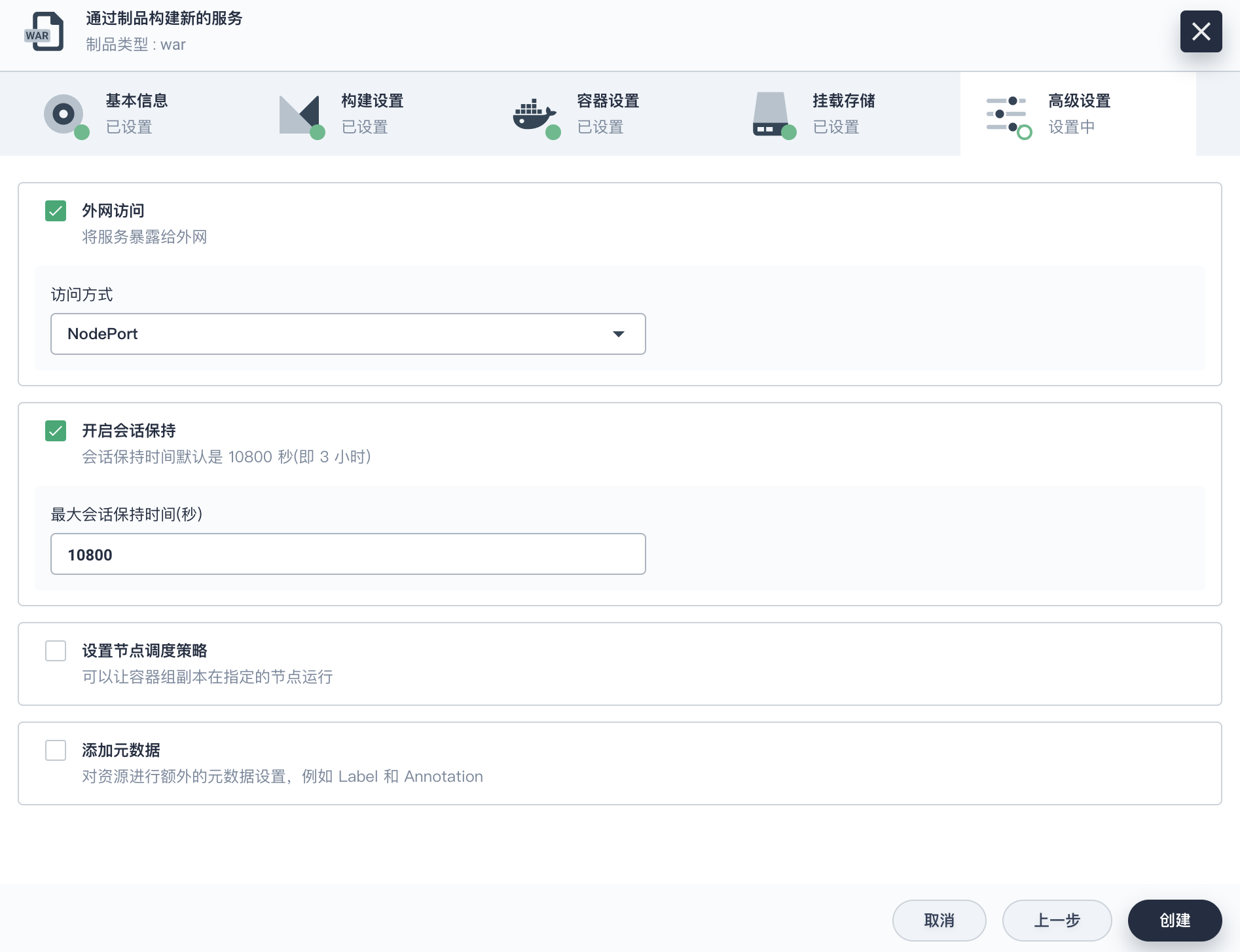 在高级设置中 勾选外网访问,并设置为NodePort,点击创建。