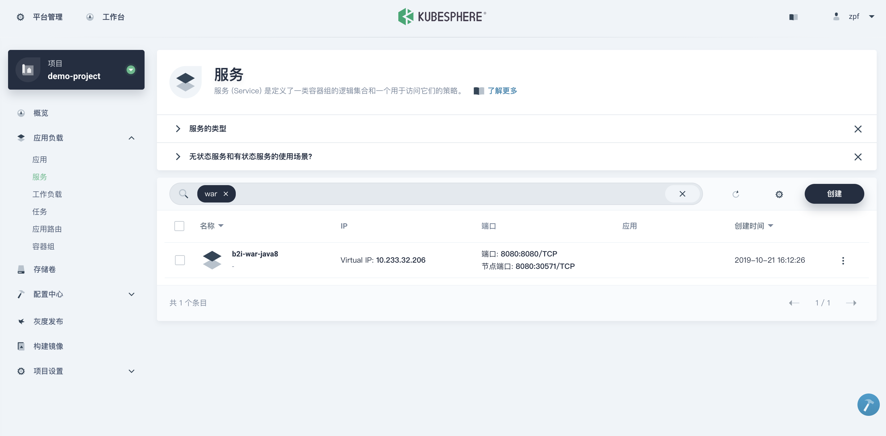 - ① 在 KubeSphere 创建 B2I 类型的服务,上传制品或二进制包