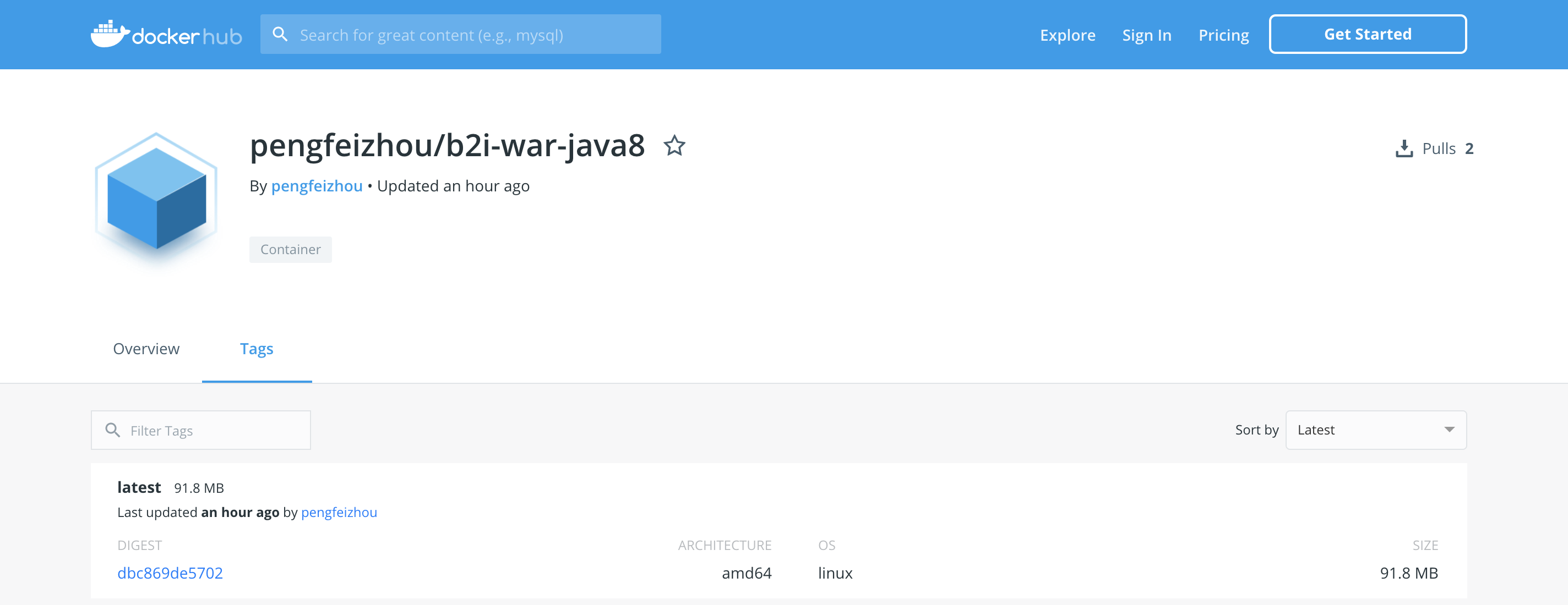 登录 DockerHub 账号,查看 B2I 自动推送的 Docker 镜像。