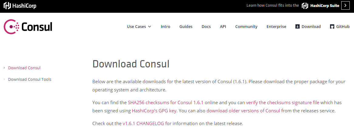 - 首先我们从官网下载Consul,地址:https://www.consul.io/downloads.html